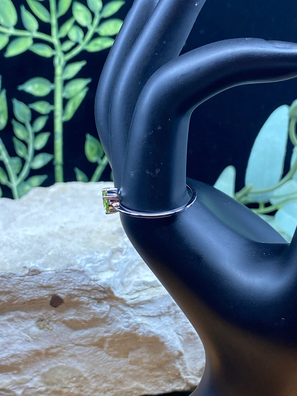 Peridot Faceted Round Sterling Silver Ring - Sm/D - Size 8