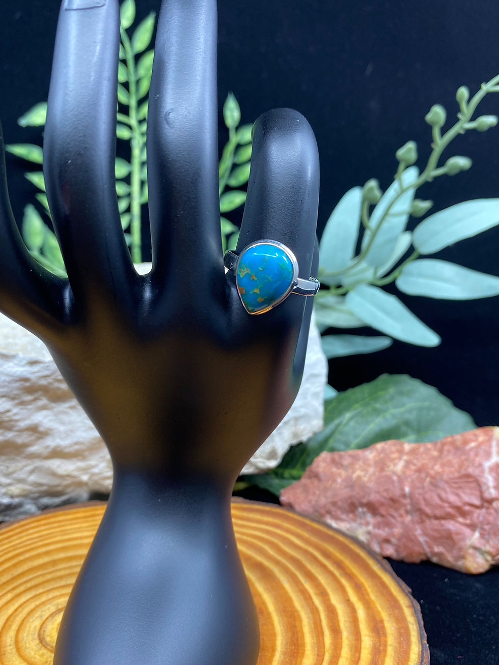 Golden Web Turquoise Teardrop Sterling Silver Ring - Size 8