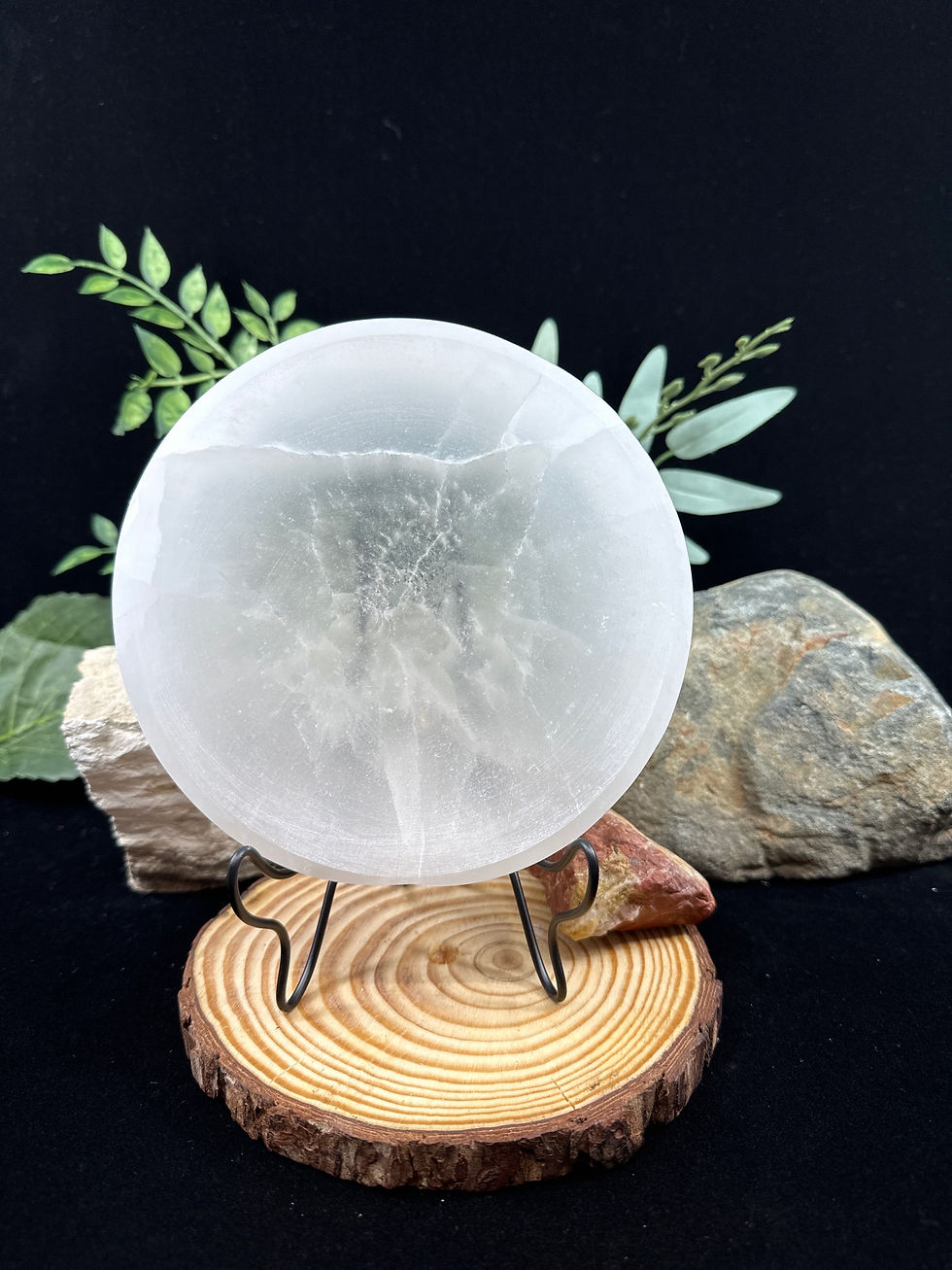 Selenite (Satin Spar) Tree of Life Disc Plate