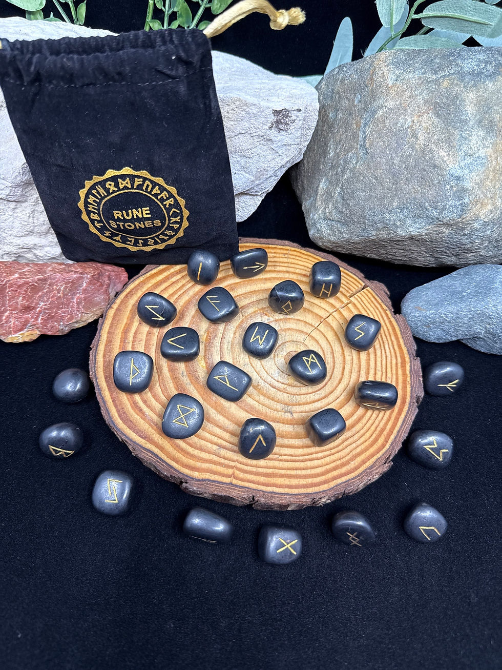 Sunstone Gemstone Rune Set with Velvet Pouch
